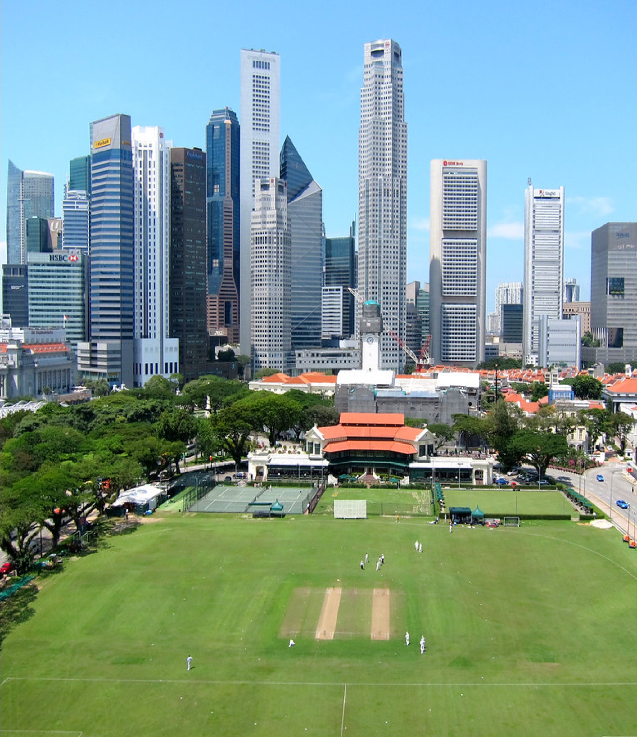 The SCC’s playing area is known as the Padang, and with its backdrop of St. Andrew’s Cathedral, City Hall, the Supreme Court Building, the National Gallery Singapore and the Central Business District, it is certainly one of the world’s more picturesque sports grounds.